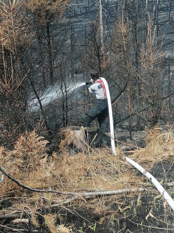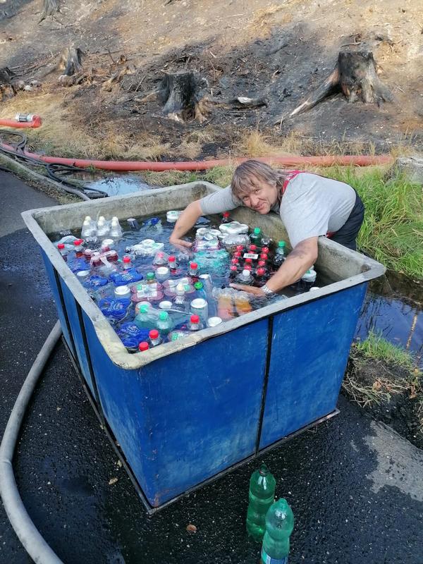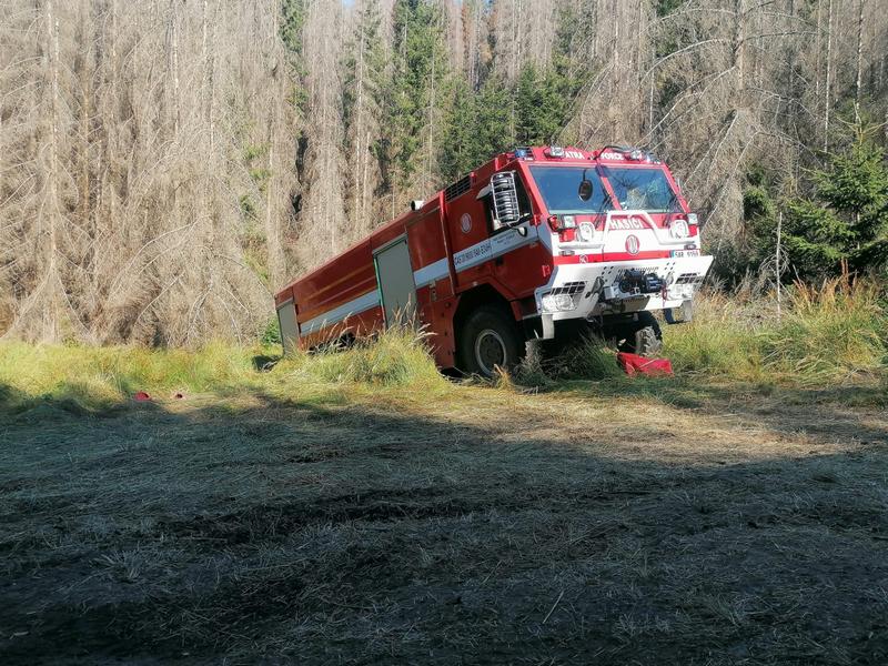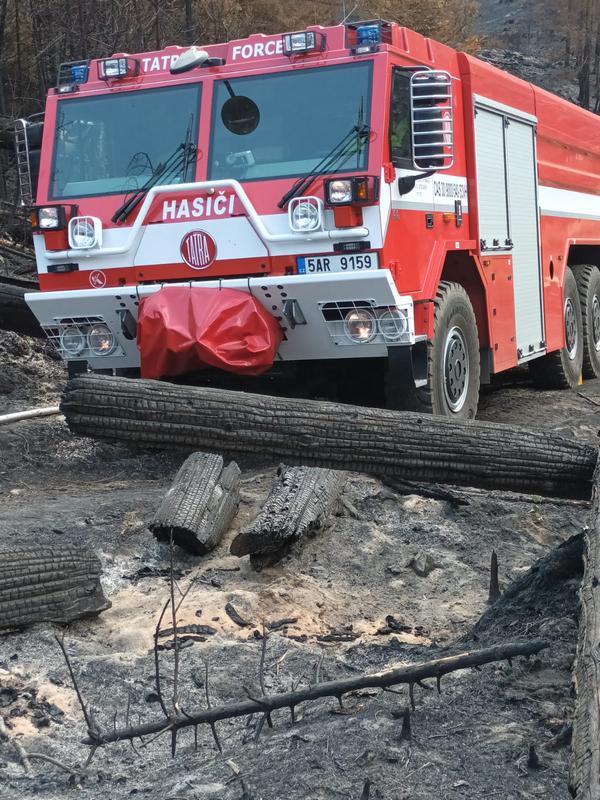 Požár v národním parku vypukl v noci z 23. na 24. července 2022 na území pokrytém z 97 % lesním porostem. 26. července byla naše jednotka uvedena do pohotovosti k odjezdu. To už hasiči zasahovali na ploše 5×2 kilometru, požár byl silným větrem zanášen do vnitřní části NP České Švýcarsko. Úřad pro civilní letectví vyhlásil nad Českým Švýcarskem zákaz letů. Bezletová zóna je stanovena v kruhu o poloměru deset námořních mil, tedy zhruba 18,5 kilometru. Týden od vypuknutí požáru lesa v Národním parku České Švýcarsko, dne 1. srpna v 17 hodin je naše jednotka v počtu 1 + 2 s Tatrou T 815/7 - CAS 30, operačním střediskem vyslána na hasební práce do Národního parku České Švýcarsko. Za Prahu bylo nasazeno 15 dobrovolných a 45 profesionálních hasičů. Do Hřenska dovezli 100 kusů hadic typu B a 100 kusů hadic typu C. Na místě je 1028 hasičů. Po příjezdu na místo bylo jednotce určeno stanoviště u Mezní Louky (cca 5,5 km od Hřenska). První noc členové jednotky strávili na požářišti v okolí Pravčické brány. V té době bylo nataženo v Národním parku České Švýcarsko 78 kilometrů hadic, ta absolutně nejvýš, na Pravčické bráně. Další dny jednotka dohašovala skrytá ohniska. Zásah byl fyzicky velmi náročný, a to vzhledem k velmi členitému terénu, který klouže po jehličí či kůře. Překážky tvořily popadané nebo pokácené stromy i trčící větve. Po psychické stránce to bylo také náročné. Dále se podílela na kyvadlové dopravě vody. Na spánek nebyl téměř čas.. Vzhledem k tomu, že se stále vyskytovaly skrytá ohniska, zůstala jednotka na žádost velitele zásahu o jeden den navíc. 10. srpna se z Hřenska vrátili dobrovolní hasiči z Prahy, celkem se jich tady vystřídalo 68. Na místě se vystřídalo celkem 150 profesionálních hasičů z Prahy. Na požářišti se vystřídalo více než 6300 profesionálních i dobrovolných hasičů a více než 400 kusů techniky. 8 vrtulníků a 5 letadel, která prováděla denně celkem stovky shozů. Zabránit rozšiřování požáru se i přes obrovské nasazení hasičů podařilo až 1. srpna, tedy 9. den od jeho vzniku. Hlavní likvidace požáru trvala do 12. srpna a kontrola a dohašování skrytých ohnisek až do konce srpna 2022. Zasažená plocha překročila 1100 hektarů. |