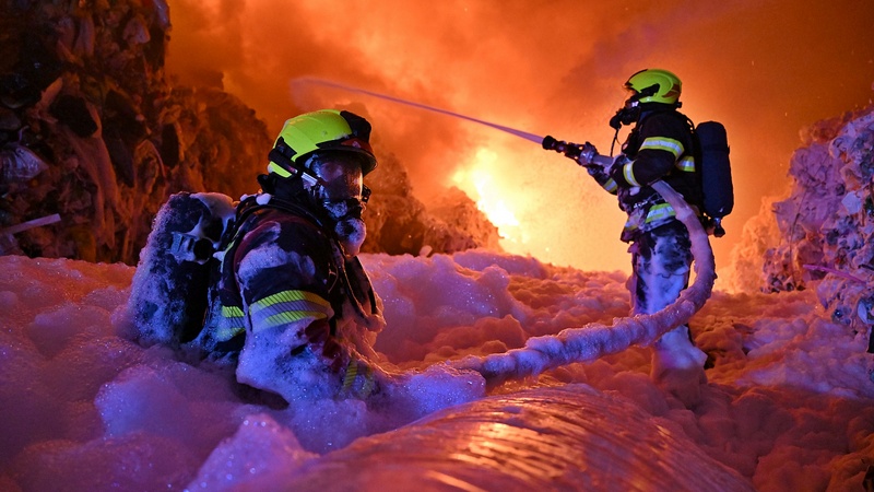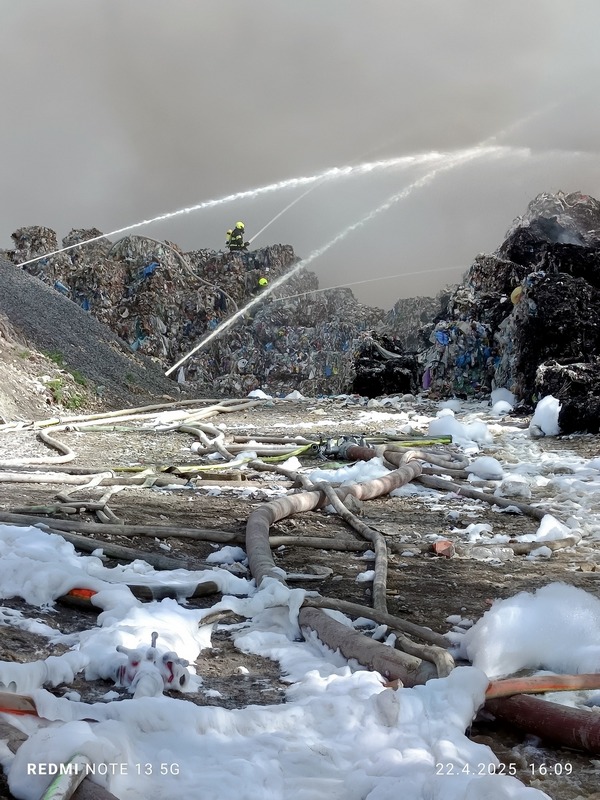 Požár plastového odpadu se rozrostl na plochu 200 x 200 metrů. Tato hromada byla navršena do pětimetrové výšky. Hašení probíhalo nejen vodou, ale také těžkou pěnou. Požární poplachový stupeň byl zvýšen na třetí a poté dokonce na nejvyšší možný – zvláštní. Hrozilo, že se požár rozšíří nejen na přilehlý les, ale také na další hromadu a odtud na halu na zpracování plastů. Les se nakonec podařilo uchránit stejně jako druhou část skládky, kde výrazně pomohla proluka mezi hromadami, kterou hasiči vyplnili lehkou pěnou a tak zastavili možné šíření požáru. Velitel zásahu si na místo vyžádal pomoc od Záchranného útvaru HZS ČR – velkokapacitní cisternu Taurus a zodolněný Titan. Operační zvedl i posilové jednotky z Prahy. Pomáhají Řepy, Řeporyje, Zličín a Stodůlky. S pomocí pro hasiče dorazil i Český červený kříž. Jednotce byl vyhlášen poplach ve 20:57. Vyjela s TATRA 815/7 CAS 30 v počtu 1 + 3 a na místě zasahovala 23 hodin. Vrátila se až 22.4. ve večerních hodinách. Na místě jsme prováděli kyvadlovou dopravu vody na požářiště a zásah byl fyzicky velmi náročný z hlediska unikajících zplodin hoření a nutnosti používat dýchací přístroje. Během zásahu došlo k vystřídání hasičů dalšími kolegy z jednotky. Od vyhlášení zvláštního stupně požární poplachu na místě zasahuje zhruba 250 lidí z 50 jednotek. V jakém stavu technika se vrací přímo z akce po tak náročném zásahu bylo vidět na akci Bezpečná 13 pod radnicí Úřadu MČ Prahy 13 následující den po návratu. Ve čtvrtek dne 24.4. jsme převzali na hasičské zbrojnici obrázky, které nakreslily děti z 1. MŠ Stochov pro všechny zasahující hasiče u požáru skládky v Rynholci. Děkujeme že na nás myslíte |