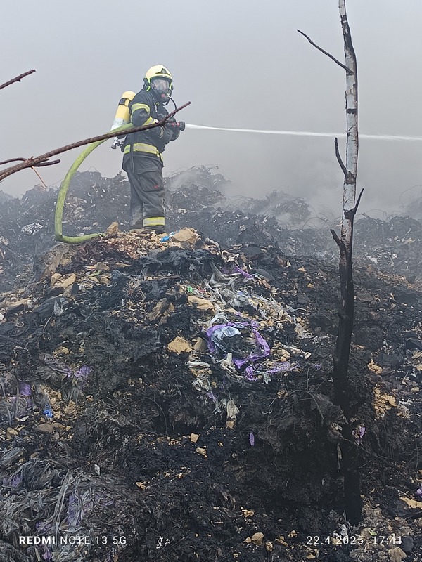 o požáru skládky v obci Rynholec na Rakovnicku.