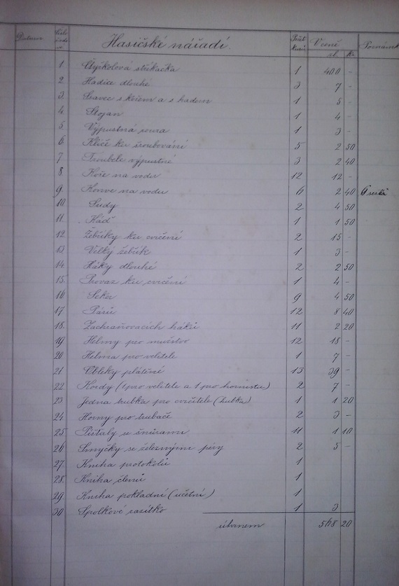 seznam hasičského nářadí sboru